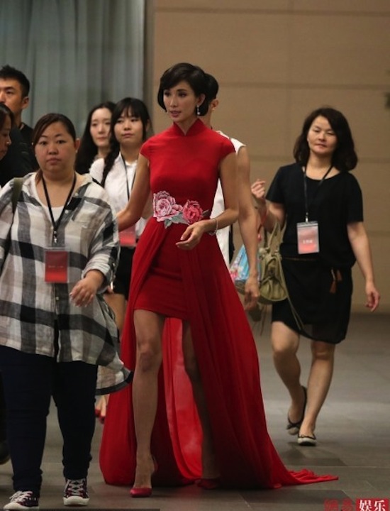 | Xuất hiện trong một sự kiện đầu tháng 8, Lâm Chí Linh rạng rỡ với trang phục đỏ được vây quanh bởi trợ lý và vệ sĩ của mình. Chiếc váy với thiết kế phong cách sườn sám, kết hợp vạt váy buông dài làm nổi bật vẻ thon thả và dáng vóc thon thả của nữ diễn viên xinh đẹp. Tuy nhiên, phần chân váy ngắn ở trong vô tình để lộ đầu gối gân guốc và nhăn nhúm của người đẹp. Không những thế dáng vóc lêu khêu và chiếc cằm dài khiến ở góc nhìn nghiêng, khuôn mặt Lâm Chí Linh bất ngờ cứng đờ như phẫu thuật thẩm mỹ.